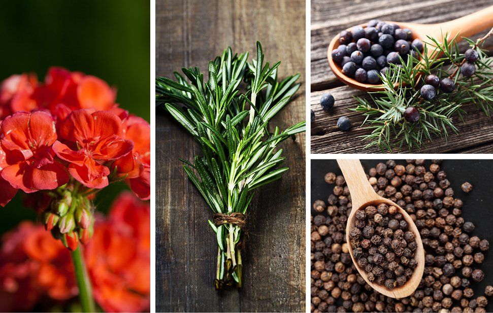 Prunus amygdalus dulcis (sweet almond) oil, Vitis vinifera (grape) seed oil, Pelargonium graveolens flower oil, Rosmarinus officinalis (rosemary) leaf oil, Triticum vulgare (wheat) germ oil, Foeniculum vulgare (fennel) oil, Juniperus communis fruit oil, Citrus grandis (grapefruit) peel oil, Piper nigrum (pepper) fruit oil, Tocopherol
